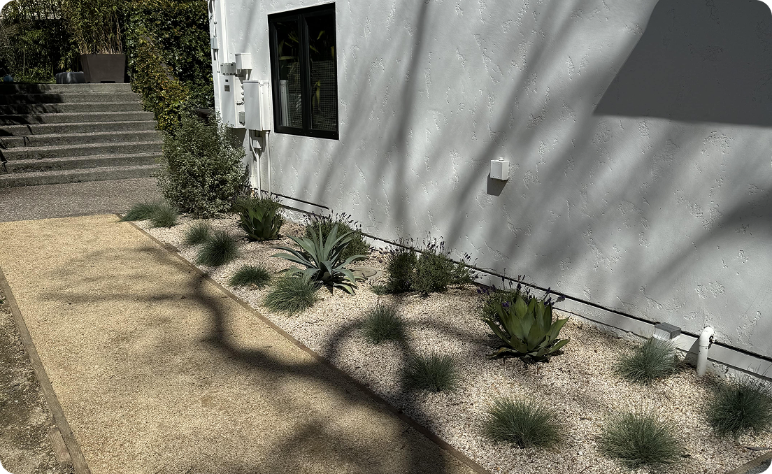 We use hardy, drought-tolerant plants that thrive in the Bay Area climate.